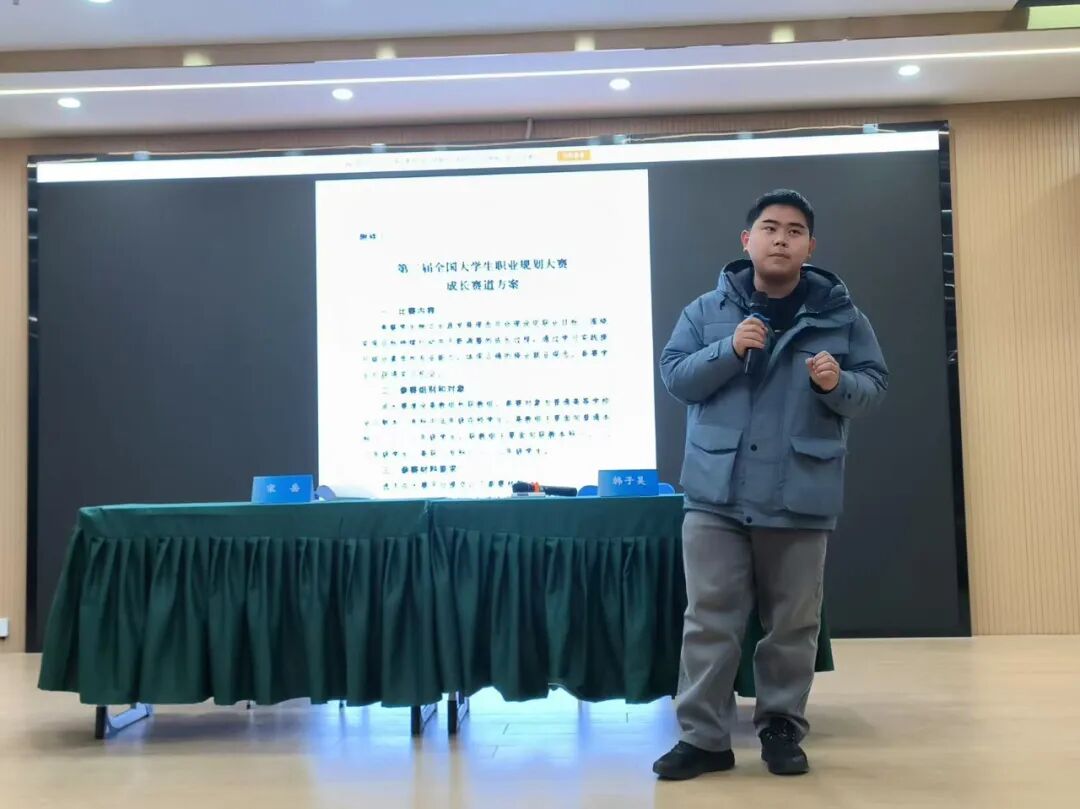培训会上,校团委创新创业与社会实践部部长韩子昊对大赛优秀案例进行了深入剖析,详细讲解了得分要点,为选手们提供了极具价值的参考。招生就业处宋岳老师则围绕政策文件及现场赛安排展开讲解,使选手们对比赛的整体框架和要求有了更为清晰的认识。